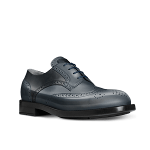 Classic Men's wing-tip dress shoes in Navy. English brogue style in Italian leather, cotton laces, and an awesome comfort made by the anti-slip rubber sole. Comes with a collector's edition shoe box. Men's Sizes 7-13.5